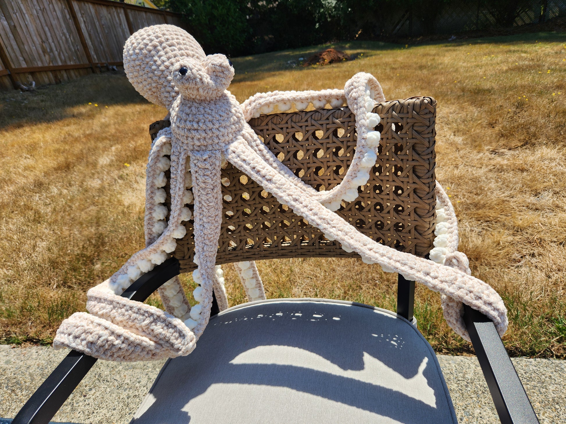 Bring a splash of cuteness into your life with this custom crochet octopus! This giant octopus is made to order and completely customizable. Each one is lovingly handmade, featuring soft yarn and an adorable design that makes it the perfect cuddle buddy, desk companion, or gift for someone special.