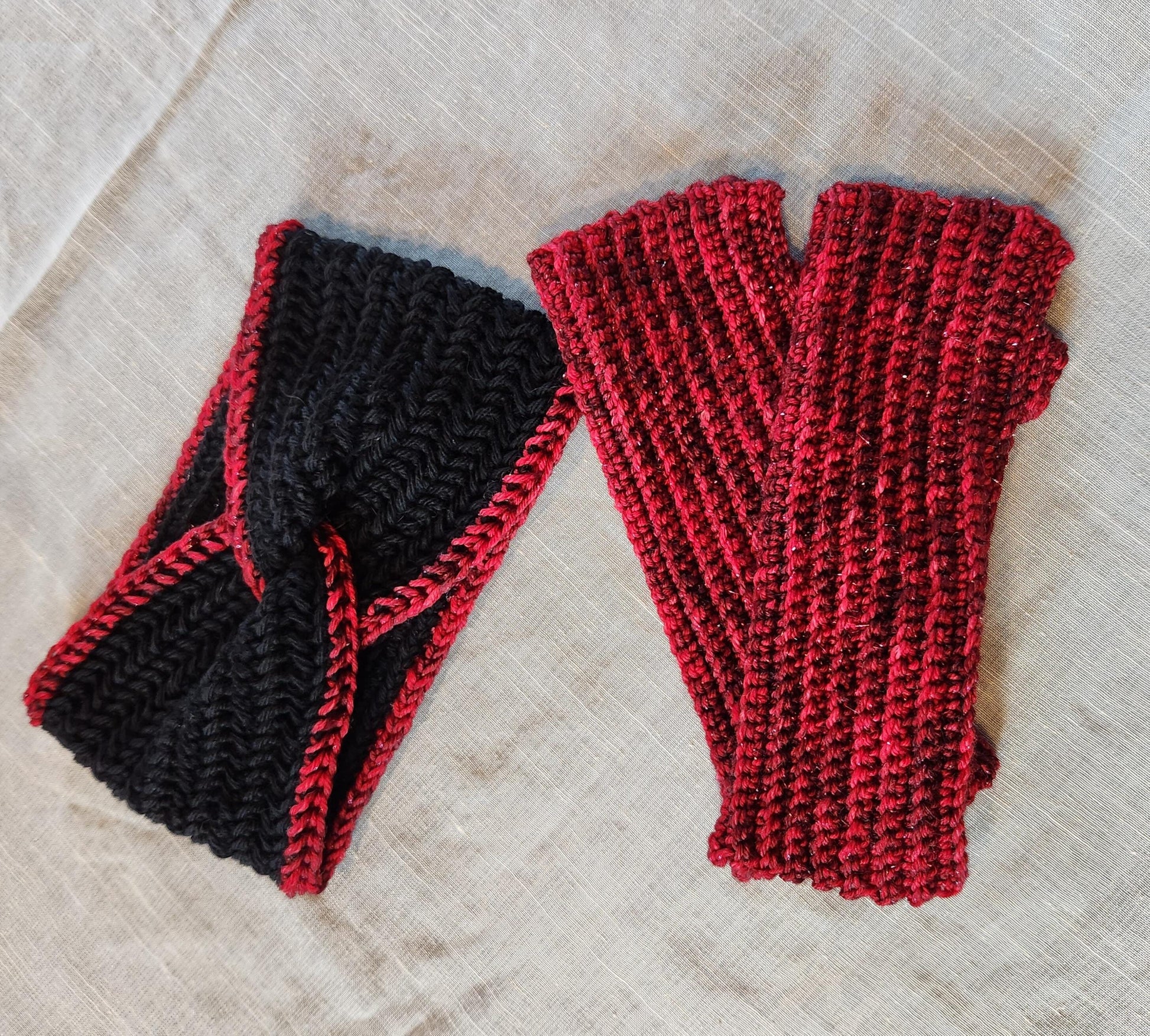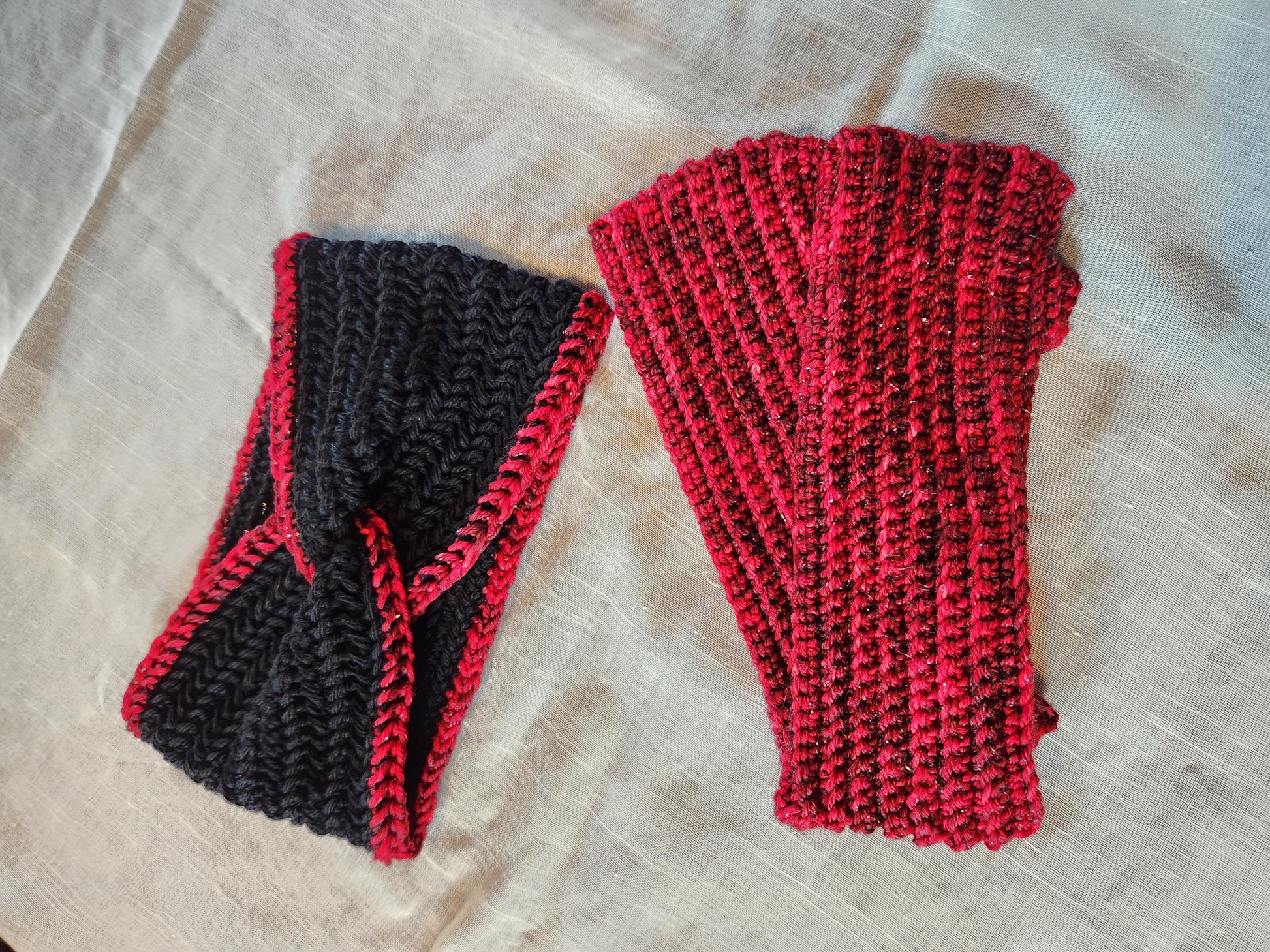 Crochet Hand-dyed Wool Ear Warmer and Fingerless Gloves Set