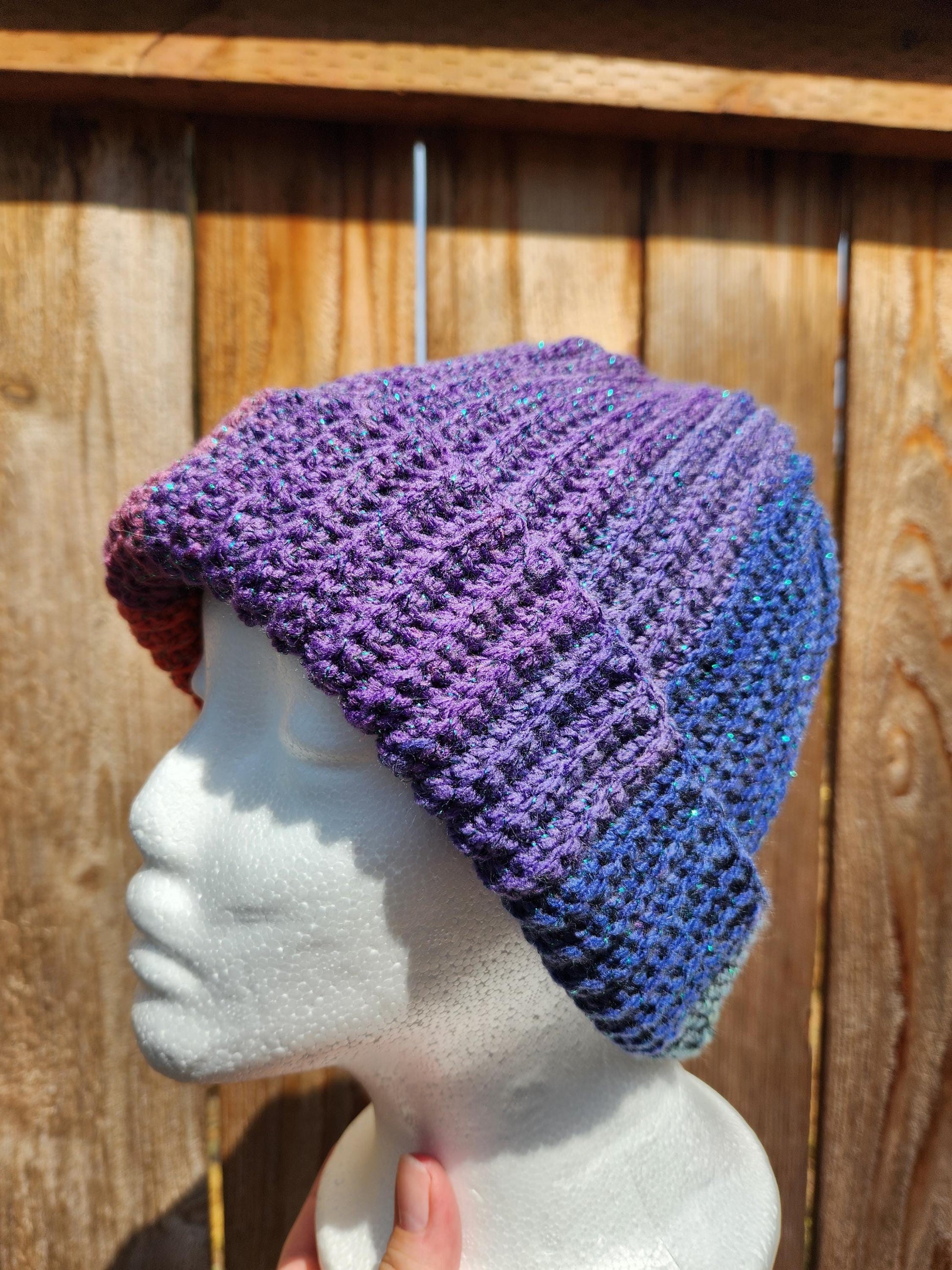 Crochet Ribbed Rainbow Sparkle Beanie